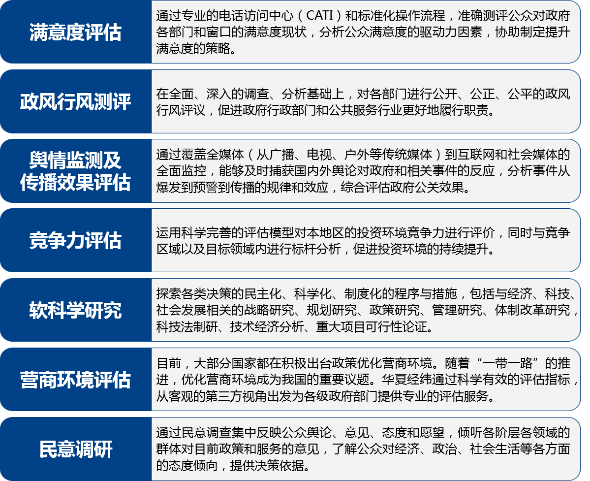 華夏經(jīng)緯可以為各級(jí)政府部門提供以下方面的研究咨詢服務(wù):