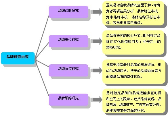 品牌是一種名稱、屬于、標(biāo)記或他們的組合運用,借以辨認(rèn)某一銷售者或其產(chǎn)品/服務(wù),并使之同競爭對手的產(chǎn)品和服務(wù)區(qū)分開來。品牌研究是采用科學(xué)的市場指標(biāo)評價和價值觀評價方法,洞察消費者對品牌的全面體驗、感受與評價,包括對產(chǎn)品功能、使用環(huán)境、使用者、制造商與經(jīng)銷商特點等等方面。